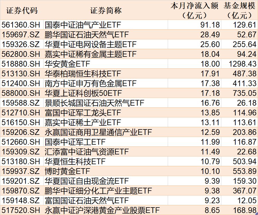 截至3月3日,本月資金凈流入額居前20的ETF名單如下: