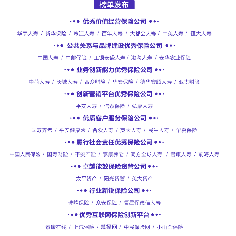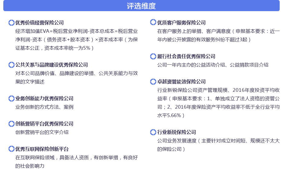 本次評(píng)選將秉持客觀真實(shí)、公正透明、范圍廣泛的原則,以“第5個(gè)保險(xiǎn)公眾宣傳日”活動(dòng)為契機(jī),再次將視角聚焦于新生態(tài)環(huán)境下中國(guó)保險(xiǎn)業(yè)最具經(jīng)營(yíng)智慧的風(fēng)云企業(yè),力求準(zhǔn)確把握保險(xiǎn)風(fēng)云脈絡(luò)。榜單以壽險(xiǎn)、產(chǎn)險(xiǎn)、資管為經(jīng)度,以經(jīng)營(yíng)理念、品牌建設(shè)、業(yè)務(wù)創(chuàng)新、客戶服務(wù)、償付能力、社會(huì)責(zé)任、資管能效為緯度來(lái)設(shè)置獎(jiǎng)項(xiàng)。